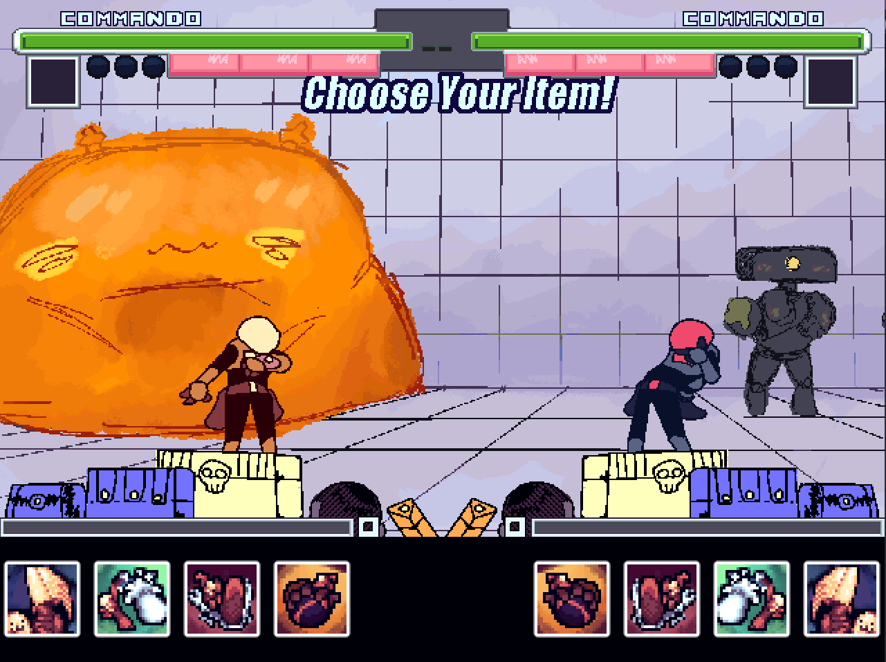 This one was also made in Fighter Maker 2nd, and features 18 characters with 8 alternate versions. Naturally, both the characters and stages are based on Risk of Rain, with character abilities being adapted into the fighting game format.