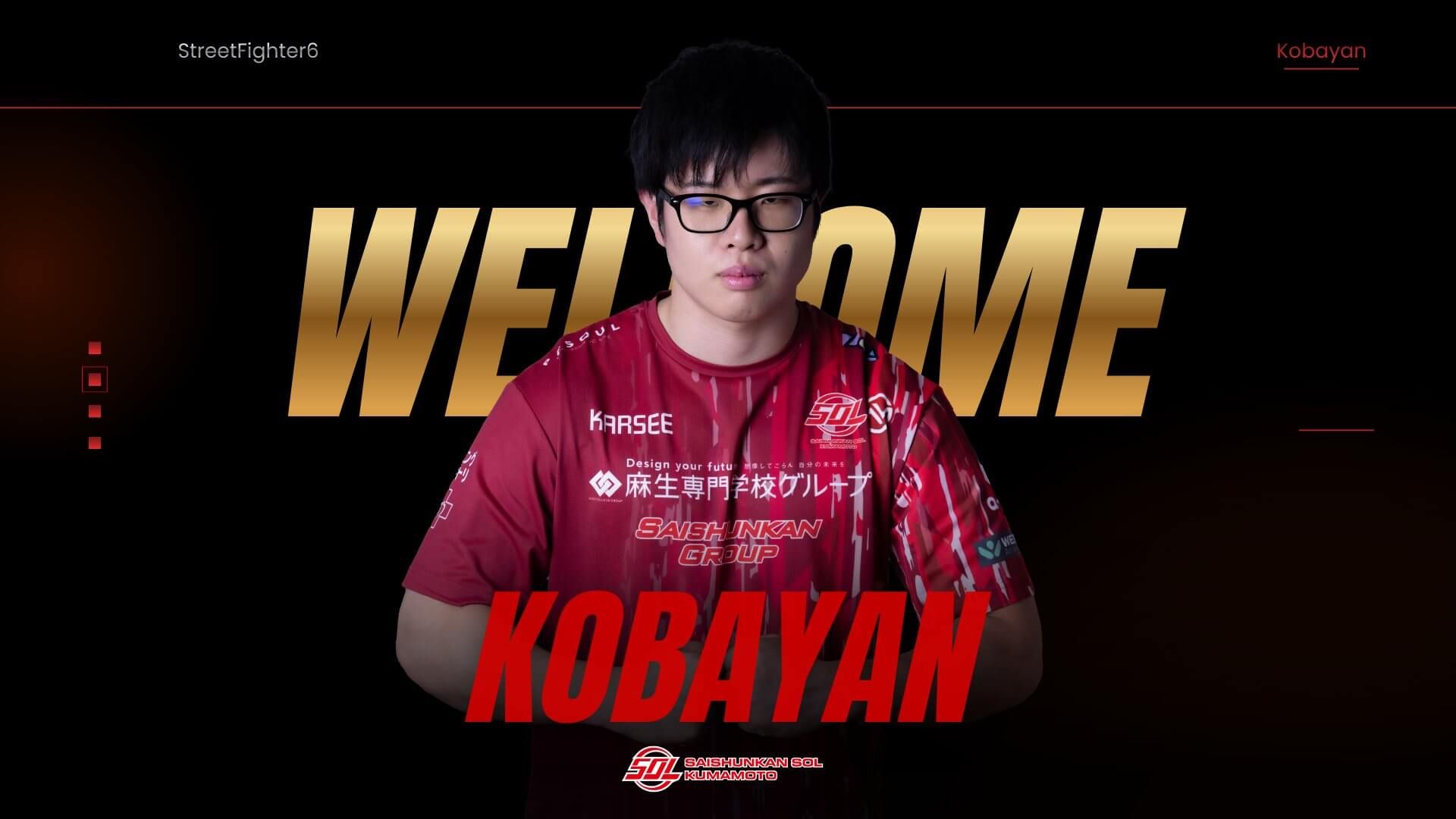 Japanese Street Fighter pro Kobayan has been unveiled as the latest signing for the esports team Saishunkan Sol Kumamoto.